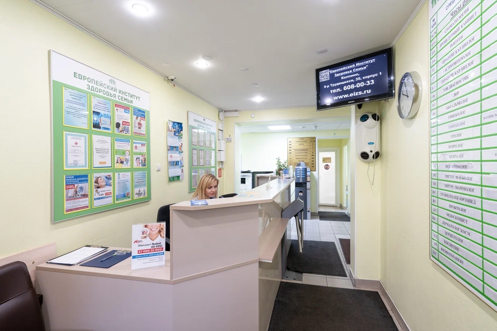 В Европейском институте здоровья семьи в Колпино прием ведут терапевт, офтальмолог, невролог, гинеколог, уролог, флеболог, офтальмолог, физиотерапевт, массажист, хирург, маммолог, кардиолог, гастроэнтеролог, ревматолог, аллерголог-иммунолог, гематолог, эндокринолог и др. Врачи клиники — специалисты с опытом более 10 лет, врачи высших категорий, кандидаты мед. наук. Проводится комплексная диагностика (в урологии, гинекологии, офтальмологии и др.), УЗИ, ЭКГ, Холтер, ФГДС, ФКС, ОКТ. Проводятся пункции, блокады суставов и позвоночника, удаление новообразований, мануальная терапия, лечение варикоза методом ЭВЛК и др.